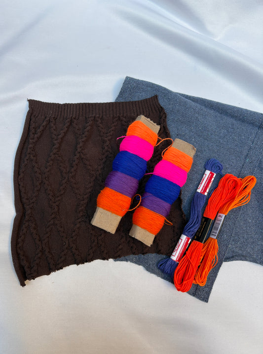 Darning Repair Bundle, Floss + Yarn + Knitting Samples *ONE-OFF*