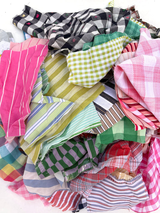 Fabric Patches, Checked/Striped Pattern/Plain, Lightweight, Ready-For-Mending, Mixed Bundle