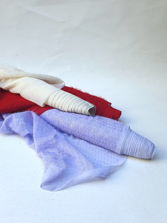 Fabric, Embroidered Sparkly Yarn, Red/Lilac/Cream, Choose-your-colour